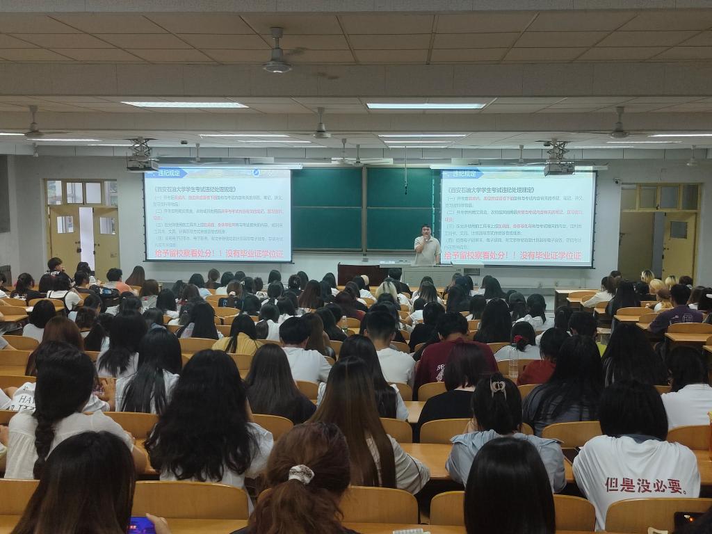會(huì)議第一部分,人文學(xué)院2022級(jí)輔導(dǎo)員范嘉欣、2023級(jí)輔導(dǎo)員王凱杰詳細(xì)介紹了學(xué)校的考試管理規(guī)定和違紀(jì)處理辦法,通報(bào)了學(xué)校已處理的違規(guī)違紀(jì)案例,強(qiáng)調(diào)了誠信考試的重要性,提醒同學(xué)們要自覺遵守考試紀(jì)律、杜絕一切作弊行為,摒棄僥幸心理。同時(shí)就如何備考、以積極心態(tài)應(yīng)對(duì)考試等方面提出實(shí)用建議,全體學(xué)生簽訂了考試誠信承諾書。兩位輔導(dǎo)員還就近期的穩(wěn)定安全事故、下學(xué)年計(jì)劃提醒學(xué)生注意身心健康,保持良好狀態(tài)面對(duì)未來,提前規(guī)劃人生方向。