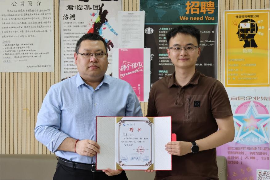在交流中,史陽(yáng)對(duì)立信會(huì)計(jì)師事務(wù)所在學(xué)院班級(jí)建設(shè)和就業(yè)工作等方面給予的大力支持表示感謝,他著重介紹了2024屆財(cái)會(huì)專業(yè)畢業(yè)生的人數(shù)規(guī)模、班級(jí)建設(shè)、學(xué)生獲獎(jiǎng)等基本情況,誠(chéng)摯邀請(qǐng)企業(yè)專家經(jīng)常到學(xué)校分享行業(yè)經(jīng)驗(yàn),并為張航頒發(fā)了“鐵人精神”校外兼職輔導(dǎo)員聘書。