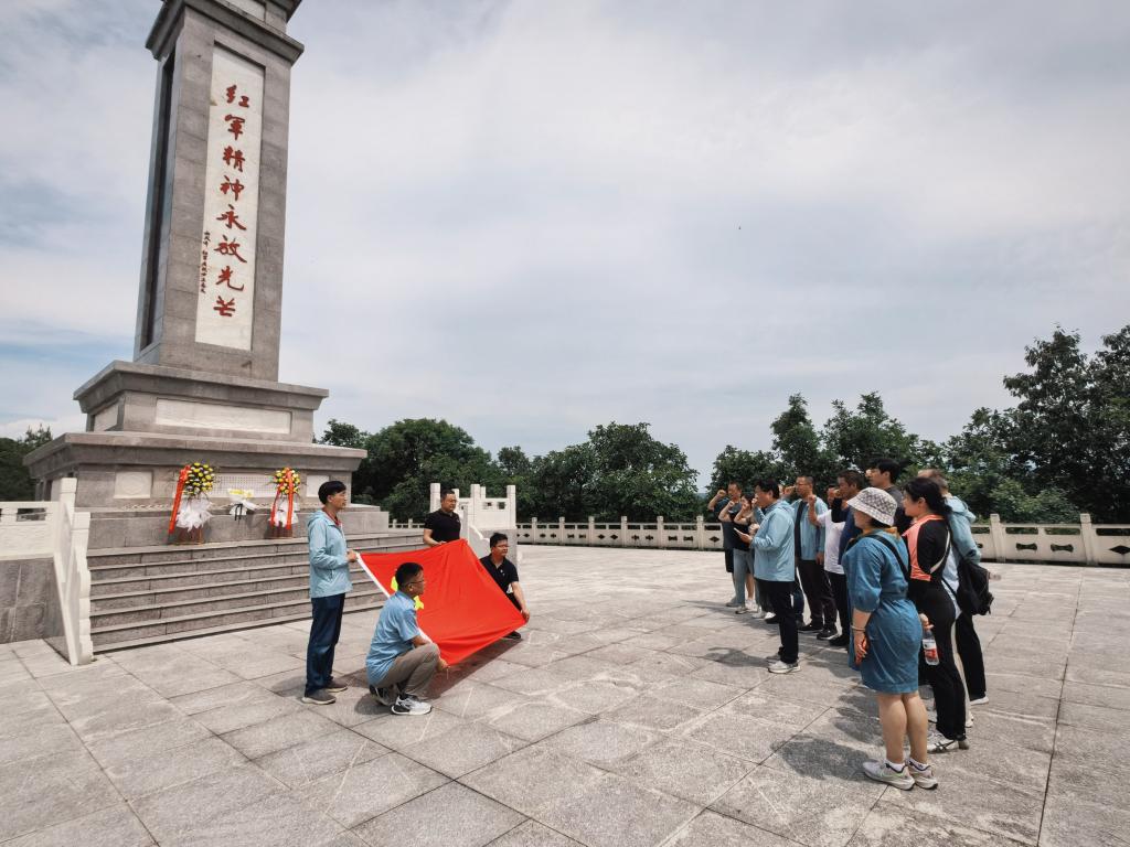 隨后,全體黨員一同前往紅軍紀念碑,向革命烈士肅立默哀,鞠躬致敬,在鮮紅的黨旗下,大家高舉右拳莊嚴宣誓,重溫黨的錚錚誓言。