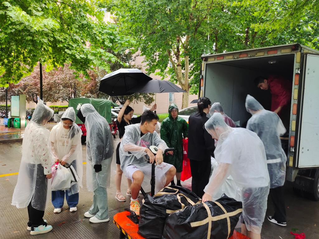 同心協力,共克時艱。在搬遷過程中,還涌現出了許多感人至深的故事。志愿者們不顧自己身體的疲憊,沖鋒在前,先人后己,全天候投身志愿服務隊伍,堅持幫助每一位學生搬運行李。他們身著白色雨衣,穿梭在宿舍樓之間,用他們純潔無瑕的內心和真情,奉獻自己的力量。不少同學在受到幫助后,也主動加入志愿服務行列,自發(fā)提出要成為“行李引導員”,主動幫助同學看管、分發(fā)行李,用自己的實際行動回饋這份關愛與溫暖。這種相互扶持、共同奮斗的精神,成為了搬遷工作中最寶貴的財富。