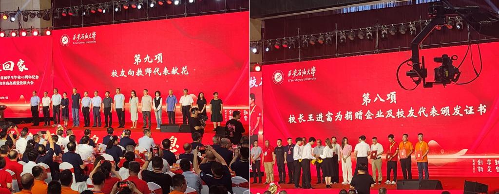7月27日上午,學(xué)校順利舉行了“西安石油大學(xué)恢復(fù)辦學(xué)首屆學(xué)生畢業(yè)40周年紀(jì)念暨2024校友秩年返校共商高質(zhì)量發(fā)展大會(huì)”,王強(qiáng)、王瑤、方丹等13位2014屆土木工程學(xué)院校友代表統(tǒng)一著裝,懷著激動(dòng)的心情全程參加大會(huì)。大會(huì)上,學(xué)院副院長(zhǎng)代建波作為教師代表接受校友鮮花。學(xué)院年輕博士呂剛代表陜西中立檢測(cè)鑒定有限公司接受校長(zhǎng)王進(jìn)富頒發(fā)的捐贈(zèng)證書。
