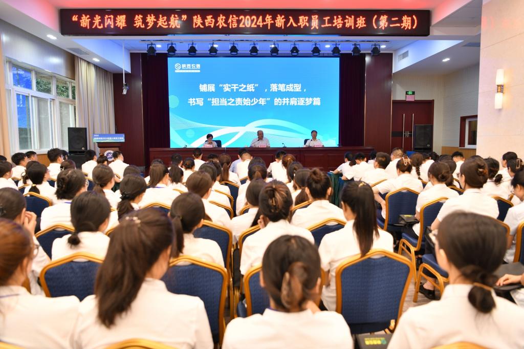 2024年7月29日,“新光閃耀 筑夢起航”陜西農信2024年新入職員工培訓班(第二期)在我校明德校區(qū)正式開班。來自全省農合機構的363名新員工參加開班儀式。省聯(lián)社黨委副書記魯怡然出席儀式并講話,儀式由省聯(lián)社培訓工作負責人高雄偉主持。