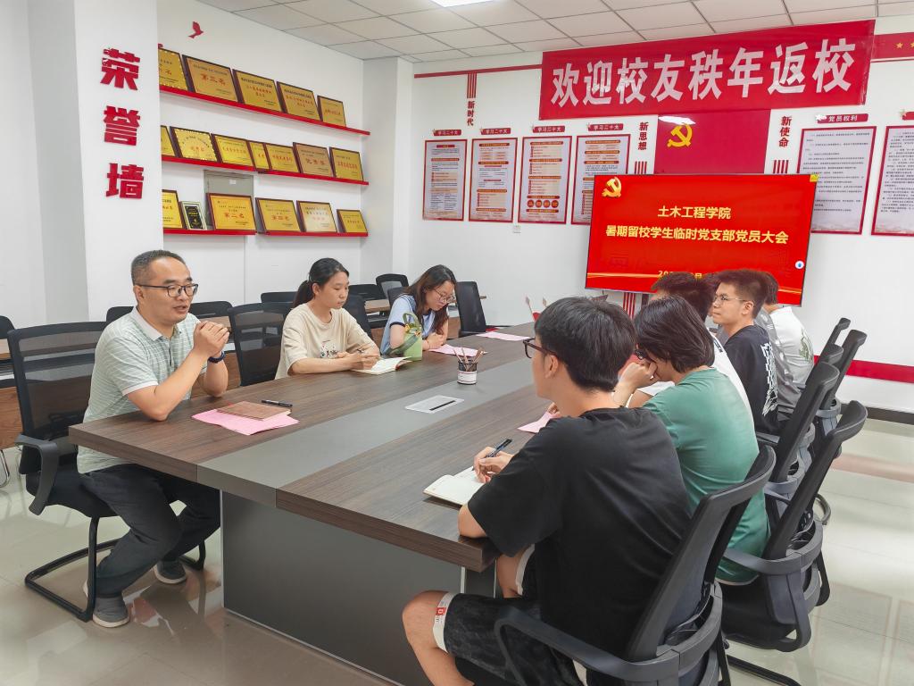 為進一步加強暑期留校學生黨員教育和管理,更好服務留校復習考研學生,按照學院黨委安排,8月4日上午,土木工程學院在鄠邑校區(qū)開物樓135會議室召開暑期留校學生臨時黨支部全體黨員大會。全體留校學生黨員參加會議,學院黨委委員、學工辦主任李化杰主持會議。