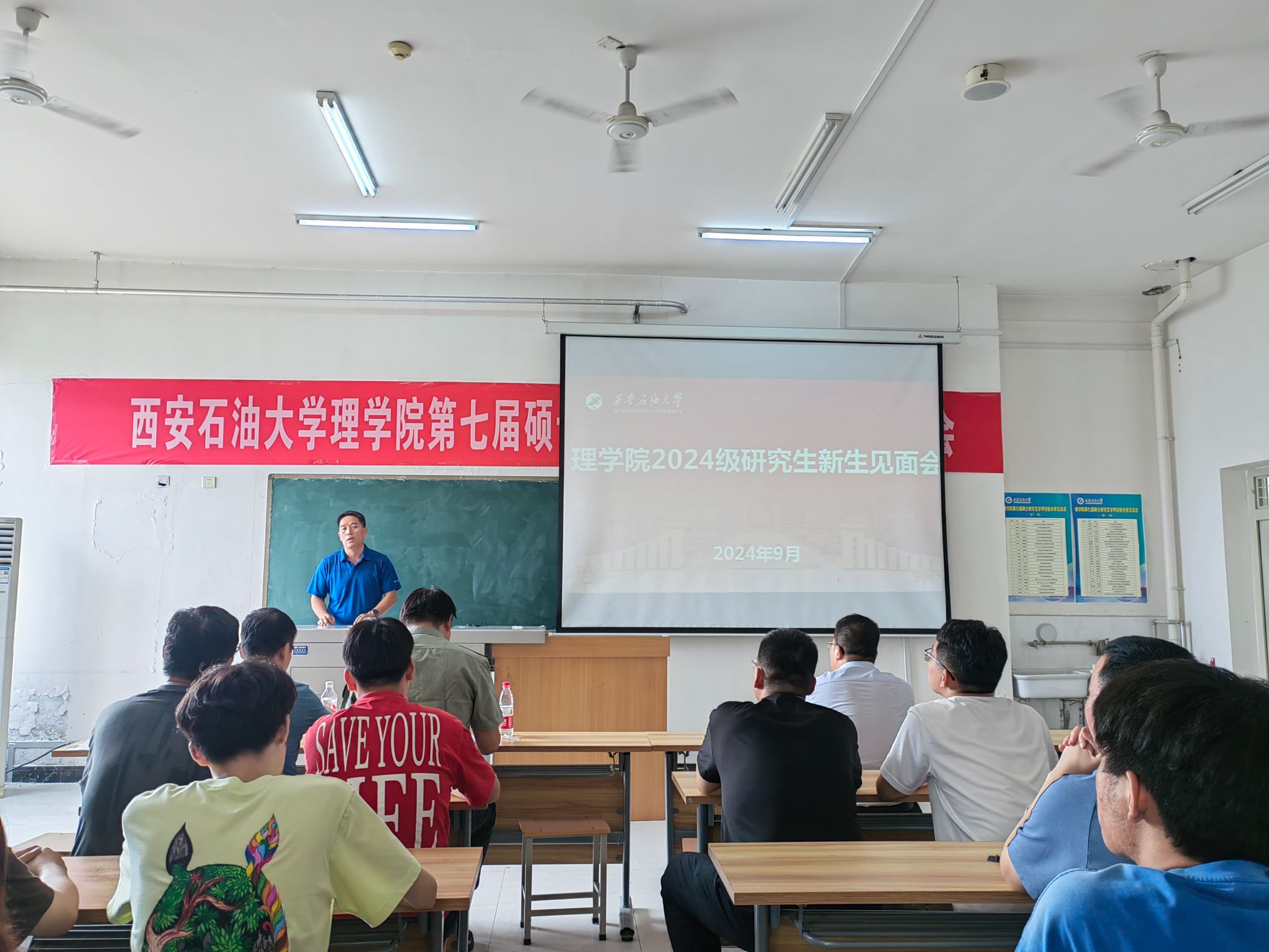 9月2日下午,理學(xué)院在鄠邑校區(qū)志遠樓502室召開了2024級碩士研究生見面會。學(xué)院黨委書記席利哲、黨委副書記楊富民、副院長折延宏、應(yīng)用物理系主任丁繼軍、研究生輔導(dǎo)員馬小梅及全體2024級碩士研究生參加了本次大會。會議由副院長折延宏主持。