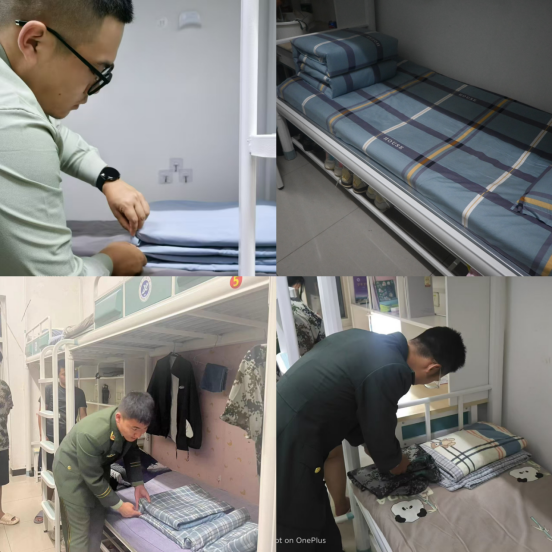 在宿舍內(nèi)務(wù)整理中,退役大學(xué)生士兵們積極同本院系參訓(xùn)干部溝通交流,課余時(shí)間主動(dòng)深入宿舍,指導(dǎo)學(xué)弟學(xué)妹們完成宿舍內(nèi)務(wù)工作。他們根據(jù)宿舍內(nèi)務(wù)規(guī)范標(biāo)準(zhǔn),身體力行示范“豆腐塊被子”的內(nèi)務(wù)整理標(biāo)準(zhǔn),協(xié)助參訓(xùn)干部完成學(xué)生宿舍內(nèi)務(wù)檢查工作。學(xué)弟學(xué)妹們不僅感受到了軍人雷厲風(fēng)行的工作作風(fēng),還保持了干凈整潔的室內(nèi)衛(wèi)生。