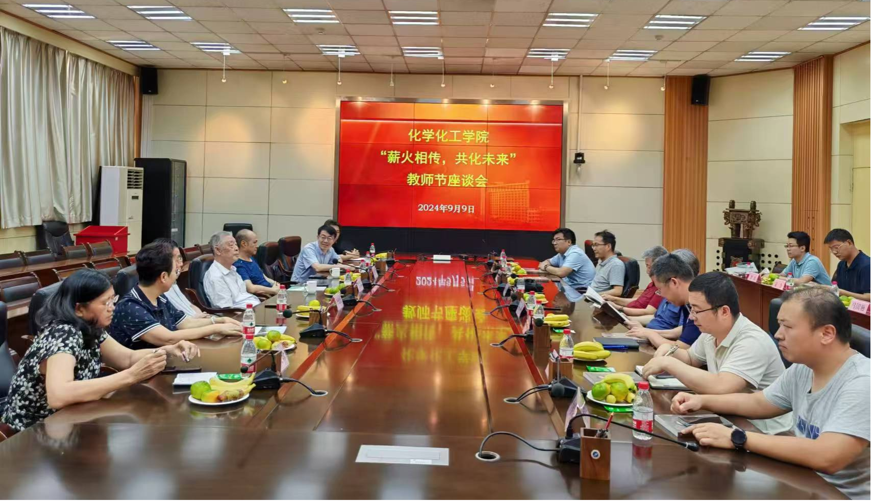 在第40個教師節(jié)來臨前夕, 9月9日下午化學化工學院在雁塔校區(qū)會議中心第二會議室舉辦“薪火相傳 共化未來”教師節(jié)座談會。學院近年來退休的老教師代表、學院領(lǐng)導班子成員、教工黨支部書記、各系主任和青年教師代表參加會議,座談會由學院黨委書記高小明主持。