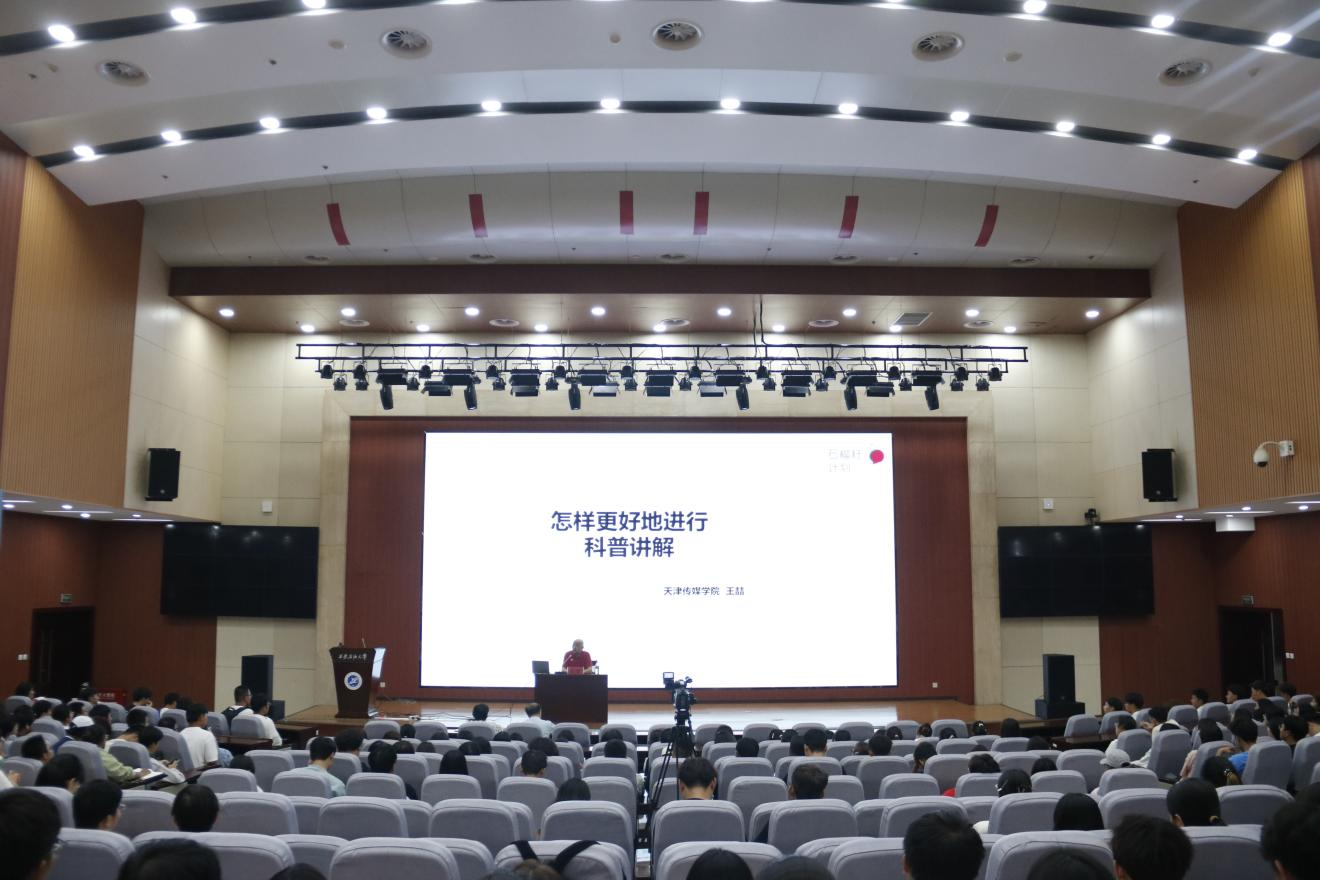 王喆結合多年來豐富的一線工作經(jīng)驗,從科普講解概念、科普講解的目的、科普講解的總體要求、科普講解構成要素、科普講解的有聲語言表達等方面對如何更好地進行科普講解進行了詳細的闡釋。他指出,科普講解的全稱是“科學普及講解”,又稱“大眾科學講解”或者“普及科學講解”,特別以全國科普講解大賽為范例,著重強調(diào)做好科普講解一定要注意文本寫作的嚴謹性、趣味性,語言表達的豐富性、多樣性,PPT創(chuàng)作的多彩性、清新性,音樂配合的烘托性、準確性。同時希望同學們能夠以《中國公民科學素質(zhì)基礎》為標準,不斷了解和領悟中華優(yōu)秀文化,增強綜合素養(yǎng)。最后,他與現(xiàn)場同學們進行了深入的互動交流,對大家的提問逐一進行了解答。