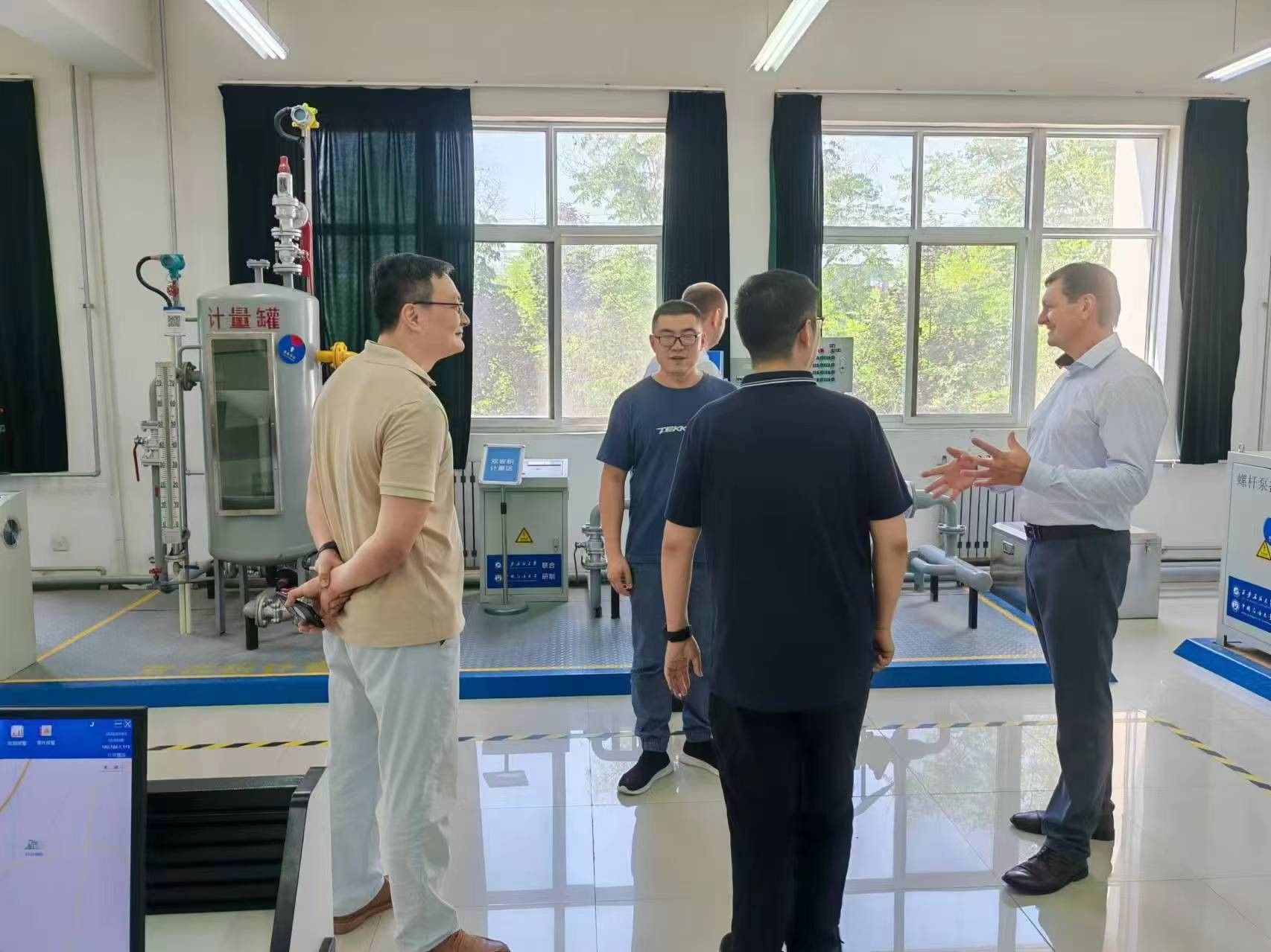 3.完成白俄羅斯石油學(xué)科設(shè)計(jì)研究院院長(zhǎng)一行及鐵一中國(guó)際學(xué)校教師代表參觀接待工作。白俄羅斯國(guó)家石油公司石油科學(xué)研究設(shè)計(jì)院院長(zhǎng)亞歷山大·齊布蘭科夫、地質(zhì)開發(fā)部副主任阿列克謝·庫德拉舒一行2人8月13日蒞臨我校鄠邑校區(qū)石油石化虛擬仿真實(shí)驗(yàn)教學(xué)中心參觀指導(dǎo)。