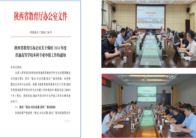 1.積極開展專業(yè)設(shè)置優(yōu)化調(diào)整工作。根據(jù)教育部《關(guān)于開展2024年度專業(yè)設(shè)置工作的通知》(教高司函〔2024〕7號(hào))及《陜西省教育廳辦公室關(guān)于做好2024年度普通高等學(xué)校本科專業(yè)申報(bào)工作的通知》(陜教教高辦〔2024〕26號(hào))文件,教務(wù)處積極學(xué)習(xí)領(lǐng)會(huì)文件精神,經(jīng)充分研討和調(diào)研,下發(fā)了《關(guān)于做好2024年本科專業(yè)設(shè)置及啟動(dòng)2025版專業(yè)人才培養(yǎng)方案修訂工作的通知》,并提供了西安石油大學(xué)本科專業(yè)招生率、就業(yè)落實(shí)率情況統(tǒng)計(jì)表(2020-2023年)、2021-2023年高校專業(yè)情況統(tǒng)計(jì)表、專業(yè)設(shè)置優(yōu)化調(diào)整參考意見等資料,積極促進(jìn)各院(系)開展設(shè)置調(diào)整計(jì)劃。8月4日、8月29日,學(xué)校2次召開了本科專業(yè)調(diào)整專題研討會(huì),張君濤副校長(zhǎng)對(duì)本科專業(yè)調(diào)整優(yōu)化作了全面部署;9月2日,學(xué)校召開院系專業(yè)調(diào)整務(wù)虛會(huì)并進(jìn)一步研討確定了本年度專業(yè)調(diào)整方案。