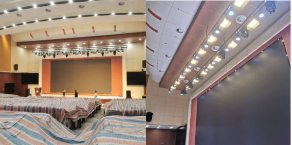 6.弘石報(bào)告廳燈光改造。為提升弘石報(bào)告廳的照明效果,滿足會(huì)議、演講、演出等活動(dòng)需求,后勤處對(duì)燈光進(jìn)行了改造。根據(jù)不同場(chǎng)景設(shè)計(jì)了燈光布局,確保照明清晰、均勻、無陰影。采用柔和光線和合理色溫,避免眩光,提升視覺舒適度,并選用節(jié)能燈具,降低能耗。