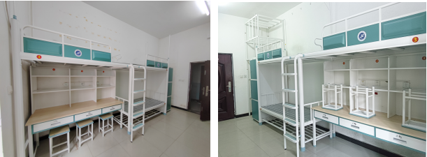 9.學(xué)生公寓改造。鄠邑校區(qū)7-11號(hào)學(xué)生公寓樓公共區(qū)域、部分畢業(yè)生宿舍墻面粉刷及設(shè)施維修,約24465.24平方米。改造后,不僅提升了樓體的美觀度,更為同學(xué)們提供了更加舒適的學(xué)習(xí)和生活環(huán)境。為了提升2024級(jí)新生宿舍儲(chǔ)物空間,后勤處暑期購置并安裝了834套行李架。每套可容納四個(gè)大行李箱,采用上下雙層設(shè)計(jì),二氧化碳保護(hù)焊接,表面經(jīng)多重工藝處理,環(huán)保健康,無異味甲醛。鄠邑校區(qū)1至4號(hào)公寓樓西側(cè)新建了電動(dòng)自行車停車棚及充電樁,有效緩解了周邊亂停亂放和充電樁不足問題。車棚采用10×10厘米方鋼結(jié)構(gòu),頂棚為藍(lán)色隔熱陽光板,安全穩(wěn)固,外觀美觀。車棚總面積380平方米,新增144個(gè)充電端口。