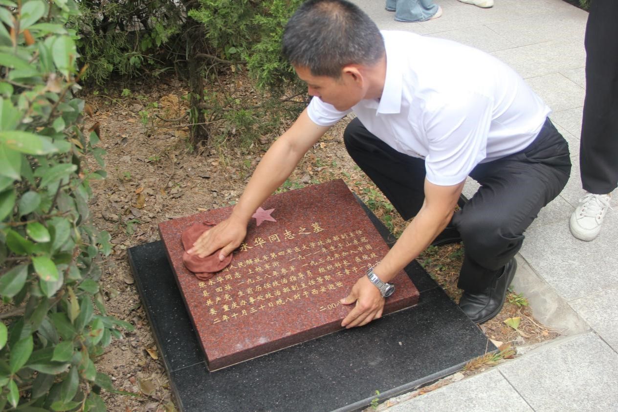 活動(dòng)第三項(xiàng),全體師生擦拭陵園烈士墓碑。大家懷著崇敬的心情,徒手清理墓碑周圍的雜草和垃圾,認(rèn)真擦拭所有烈士墓碑,讓墓碑一塵不染,以此來表達(dá)對烈士偉大精神的深切思念和緬懷。