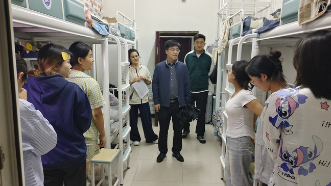 一次查訪,深化安全穩(wěn)定成果。9月29日晚,黨委副書(shū)記張浩然帶領(lǐng)各年級(jí)輔導(dǎo)員深入學(xué)生宿舍,特別是重點(diǎn)關(guān)注學(xué)生宿舍,詳細(xì)詢(xún)問(wèn)了學(xué)生們近期的思想動(dòng)態(tài),關(guān)心大家的學(xué)業(yè)、生活情況,還特別關(guān)注了學(xué)生的假期去向,鼓勵(lì)大家合理規(guī)劃假期生活,確保安全出行。通過(guò)面對(duì)面的交流,不僅拉近了師生間的距離,更讓學(xué)生感受到了來(lái)自學(xué)校的溫暖與關(guān)懷,進(jìn)一步增強(qiáng)了學(xué)生遵守安全規(guī)定的自覺(jué)性。