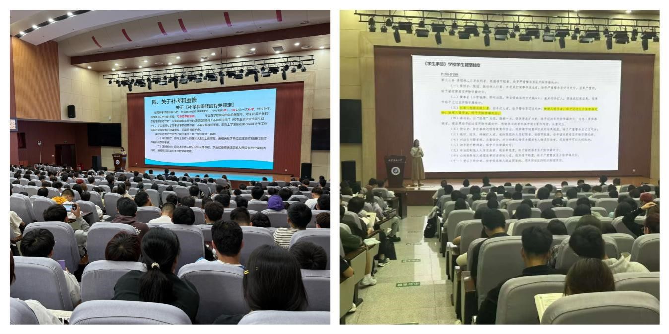 為幫助2024級學(xué)生學(xué)習(xí)理解學(xué)生管理相關(guān)制度,教育引導(dǎo)學(xué)生們養(yǎng)成良好的學(xué)習(xí)生活習(xí)慣,10月9日下午,電子工程學(xué)院在鄠邑校區(qū)弘石報告廳召開“強(qiáng)化學(xué)籍管理、明確校規(guī)校紀(jì)”教育會。學(xué)院黨委副書記芮執(zhí)根、教學(xué)辦公室主任張漪、2024級輔導(dǎo)員沈軒羽、帕麗達(dá)·托乎提及2024級全體學(xué)生參加會議。
