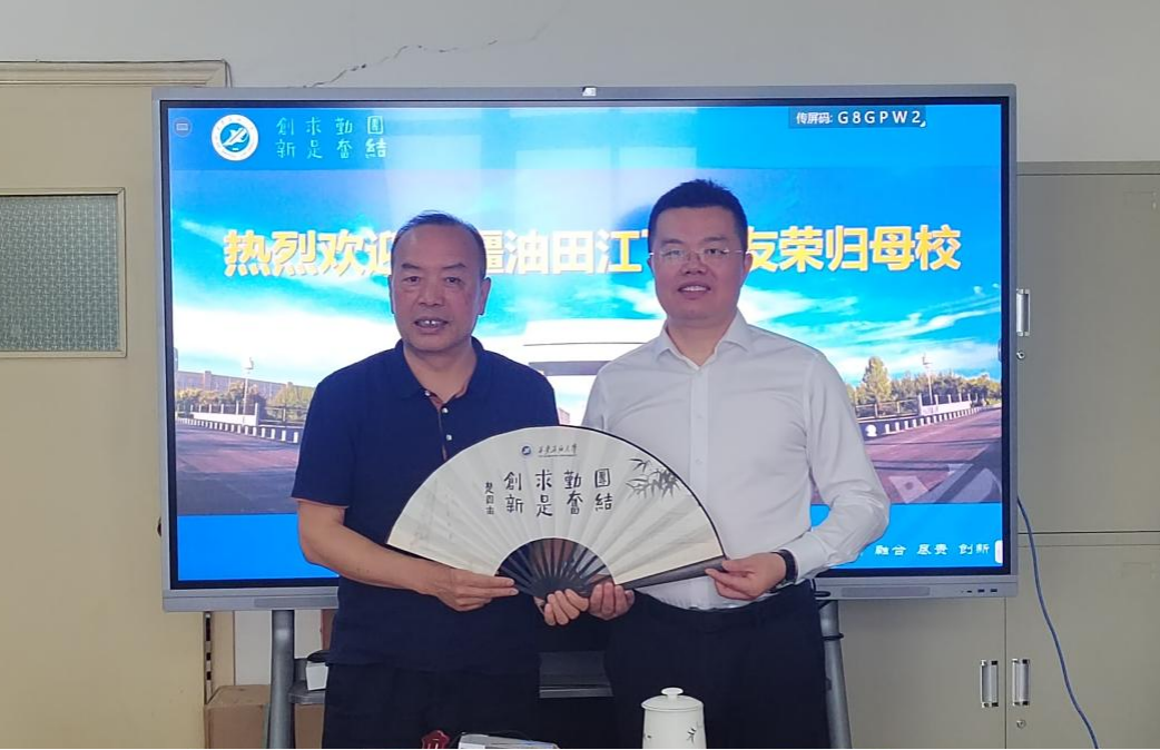 談建勤書記做了總結(jié)發(fā)言,他期望江飛校友和其他校友一道加強與母校、學(xué)院的聯(lián)系交流,積極促成與母校各項合作業(yè)務(wù)開展,不斷拓寬合作領(lǐng)域,共同為油田及母校事業(yè)發(fā)展做出應(yīng)有的貢獻。談建勤還向江飛校友贈送了紀(jì)念品。