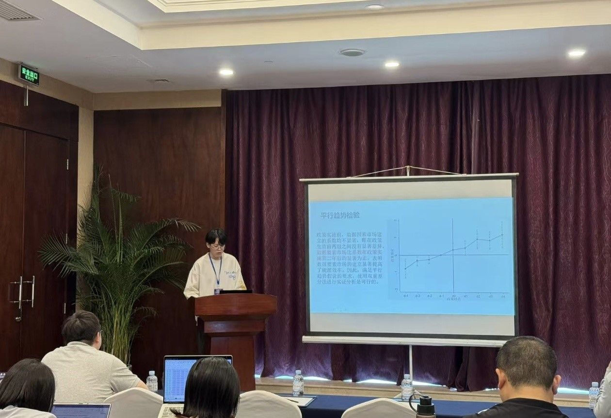 趙花花同學(xué)作了題為《數(shù)據(jù)要素市場(chǎng)化如何影響企業(yè)綠色全要素生產(chǎn)率——基于數(shù)據(jù)交易平臺(tái)的準(zhǔn)自然實(shí)驗(yàn)》的專題報(bào)告。該研究基于新發(fā)展理念的指導(dǎo)從綠色視角出發(fā)剖析數(shù)據(jù)要素市場(chǎng)化對(duì)企業(yè)綠色全要素生產(chǎn)率的影響。