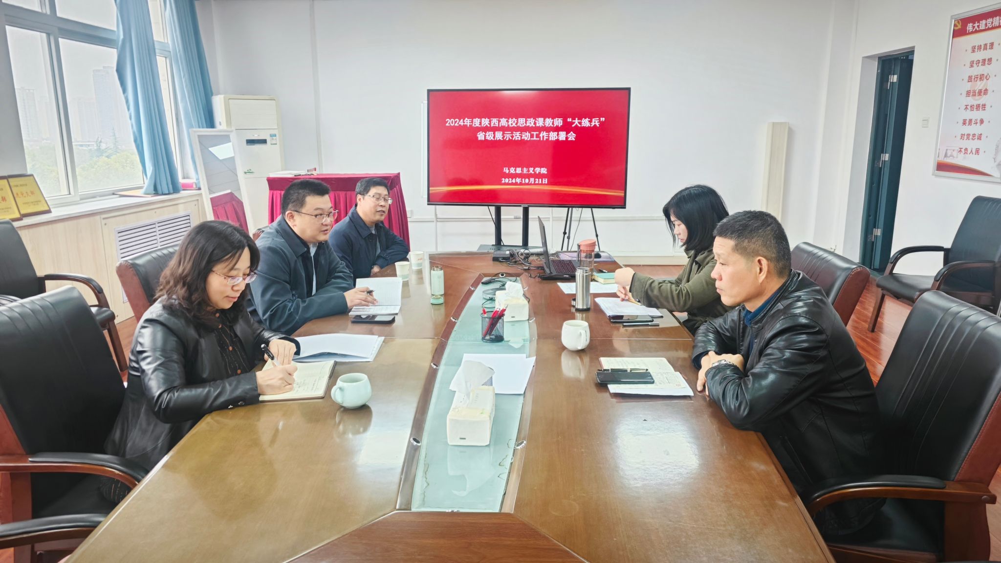 10月21日上午,馬克思主義學(xué)院召開2024年度陜西省高校思政課教師“大練兵”省級(jí)展示活動(dòng)工作部署會(huì),學(xué)院領(lǐng)導(dǎo)班子成員,兩次全國(guó)高校思想政治理論課教學(xué)展示獲獎(jiǎng)教師左玲參加會(huì)議,會(huì)議由張海濤院長(zhǎng)主持。