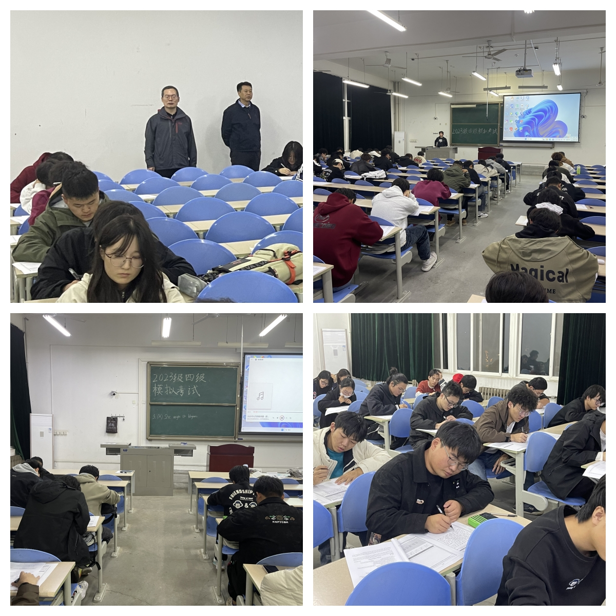 為增強(qiáng)石油工程學(xué)院學(xué)生的英語(yǔ)運(yùn)用水平,提高學(xué)生英語(yǔ)四級(jí)考試的通過(guò)率,石油工程學(xué)院聯(lián)合外國(guó)語(yǔ)學(xué)院1022正式啟動(dòng)大學(xué)生英語(yǔ)四級(jí)專項(xiàng)培訓(xùn)活動(dòng)當(dāng)晚19點(diǎn)在邑校區(qū)石工樓115室召開培訓(xùn)動(dòng)員會(huì),20點(diǎn)進(jìn)行英語(yǔ)四級(jí)全真模擬考試。石油工程學(xué)院黨委書記司馬文龍、黨委副書記張浩然、副院長(zhǎng)王琛,外國(guó)語(yǔ)學(xué)院副院長(zhǎng)陳武出席會(huì)議,外國(guó)語(yǔ)學(xué)院黨委書記張建高赴考場(chǎng)巡視。