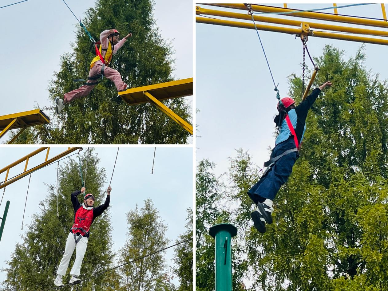 在高空項(xiàng)目體驗(yàn)中,參與同學(xué)根據(jù)分組分別進(jìn)行了“斷橋飛躍”、“高空滑索”和“鋼絲行走”三個(gè)項(xiàng)目。通過隊(duì)友的鼓勵(lì)和自身的突破,所有同學(xué)由開始的恐懼、畏縮,逐漸堅(jiān)定意志,順利的克服了心里障礙。當(dāng)最后一位同學(xué)完成挑戰(zhàn)時(shí),大家不禁發(fā)出了勝利的歡呼,有些同學(xué)還激動(dòng)地流下了眼淚。同學(xué)們紛紛表示,隊(duì)友的鼓勵(lì)以及個(gè)人對(duì)團(tuán)隊(duì)保護(hù)人員的信任促使了勇氣的形成。