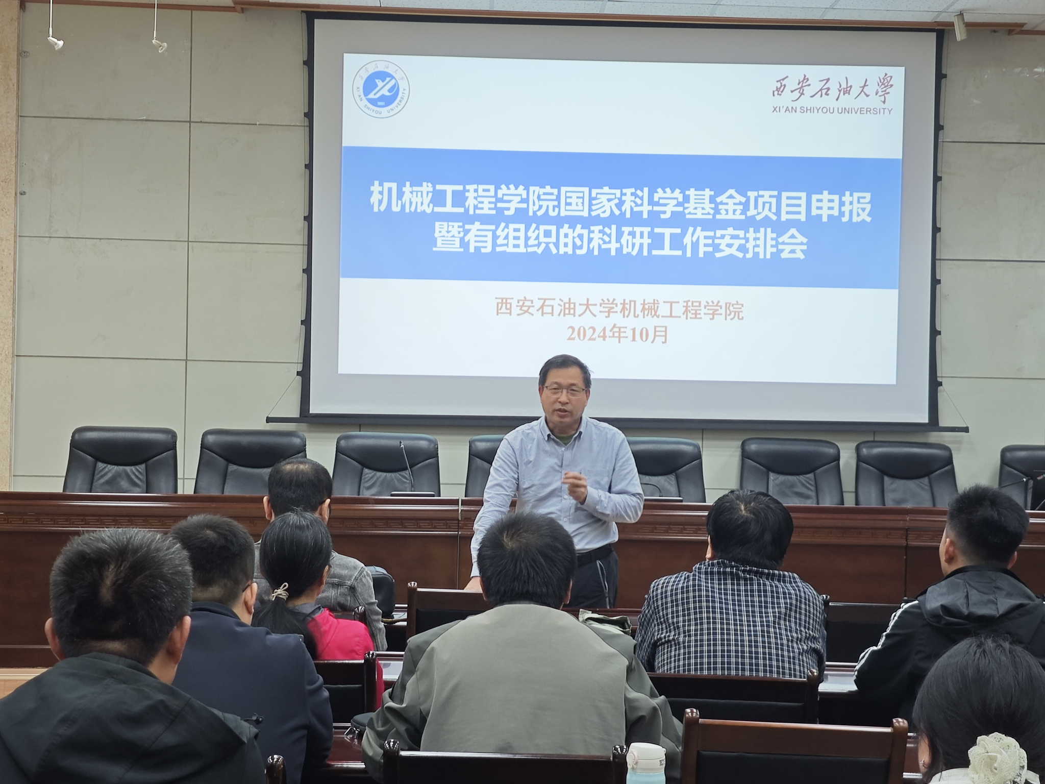 20241030日下午,機(jī)械工程學(xué)院在雁塔校區(qū)第三會(huì)議室組織召開國家自然科學(xué)基金項(xiàng)目申報(bào)暨有組織的科研工作安排會(huì)。學(xué)??蒲刑幐碧庨L焦龍應(yīng)邀到會(huì)指導(dǎo),學(xué)院黨委書記蔡建文、副院長崔璐及全體專業(yè)教師參會(huì)。會(huì)議由崔璐主持。