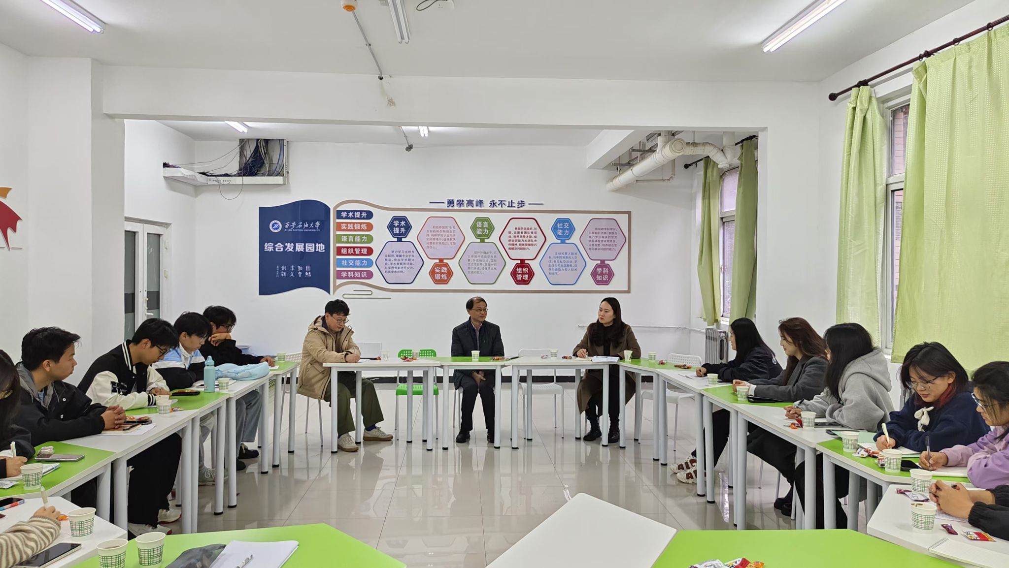 為進一步提升學院團學干部、班級安全員的工作能力,10月31日下午,化學化工學院在學校“一站式”學生社區(qū)——“綜合發(fā)展園地”舉辦第七期“教授下午茶”活動。本期活動邀請學校穩(wěn)定安全辦公室副主任兼黨委辦公室副主任李強做客交流,學院各年級輔導員、團學干部、班級安全員參加。本次活動由學院2024級輔導員王蓉主持。