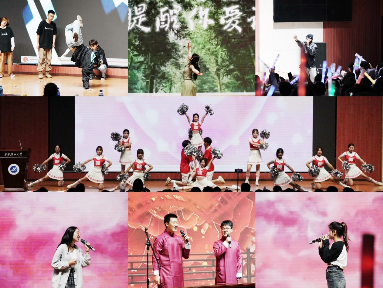 演出在團(tuán)體啦啦操表演中正式拉開序幕。隨后,形式多樣、內(nèi)容豐富的歌曲、相聲、舞蹈、小品等文藝節(jié)目依次登場(chǎng),奏響了同學(xué)們青春的樂章。說(shuō)唱《曬》道出青年永不言敗的生活態(tài)度,恰似驕陽(yáng)破云,熠熠生輝;舞蹈《蘭亭序》舞者們翩躚而舞,引領(lǐng)觀眾悠然領(lǐng)略獨(dú)特東方神韻,仿若墨韻流芳,詩(shī)意氤氳;歌曲《世界上的另一個(gè)我》動(dòng)人旋律悠悠奏響,絲絲縷縷,撩人心弦;相聲表演中,演員妙語(yǔ)連珠,以幽默詼諧的話語(yǔ),活靈活現(xiàn)地演繹人間百態(tài);街舞《champion》活力四射,舞者們以極具爆發(fā)力的舞步,淋漓盡致地詮釋當(dāng)代青年的熱血與霸氣,仿若烈火燃情,震撼人心;歌曲《就讓這大雨全都落下》音符跳躍,奏響一場(chǎng)情緒的磅礴大雨,如泣如訴,惹人共情;話劇《八十一難》生動(dòng)詮釋師徒四人西天取經(jīng)那布滿荊棘的征程,盡顯堅(jiān)毅,恰似史詩(shī)畫卷,徐徐展開;吉他彈唱《世間美好與你環(huán)環(huán)相扣》淺吟低唱,引領(lǐng)觀眾漫步走進(jìn)那愛意滿溢的世界,靜靜感受人世間的美好溫情,如沐春風(fēng);舞蹈《拉丁舞串燒》活力奔放,表演者們熱情似火的舞步與音樂節(jié)奏相互交融,將拉丁風(fēng)情展現(xiàn)得酣暢淋漓;歌曲《不再猶豫》激昂旋律奏響,驅(qū)散心頭的迷茫,振奮人心;韓舞《世界末日》扣人心弦,表演者憑借獨(dú)特舞步帶領(lǐng)觀眾踏入一個(gè)震撼人心的舞蹈時(shí)空;歌曲《如愿》余音繞梁,為此次開幕式畫上了圓滿的句號(hào),令人回味。