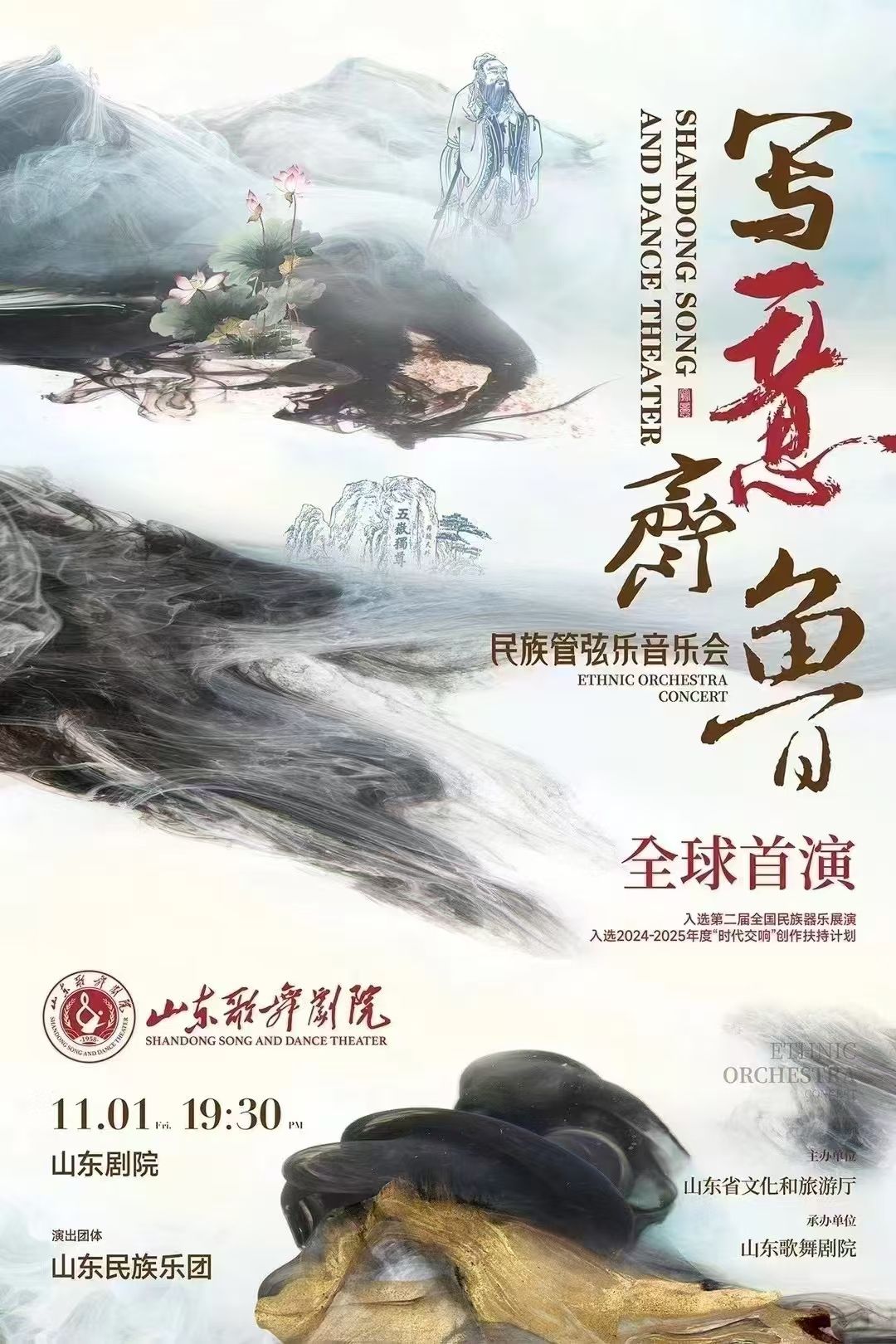 由山東省文化和旅游廳主辦,山東省歌舞劇院演出的民族管弦樂音樂會《寫意齊魯》于11月1日晚在山東大劇院成功首演。該作品榮獲中華人民共和國文化和旅游部2024-2025年度“時代交響”創(chuàng)作扶持計劃,并入選第二屆全國民族器樂展演活動。本場音樂會由國家一級指揮、中央民族樂團(tuán)首席指揮、山東民族樂團(tuán)藝術(shù)總監(jiān)兼首席指揮、中國音樂學(xué)院民族樂團(tuán)首席客座指揮、中國民族管弦樂學(xué)會指揮專業(yè)委員會常務(wù)副會長劉沙擔(dān)任指揮,我系青年教師、國家一級演奏員周曉應(yīng)山東省歌舞劇院邀請參與此次音樂會,擔(dān)任樂團(tuán)首席。