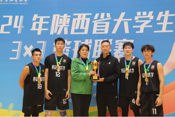 本屆比賽共有來自全省45所高校、115支隊(duì)伍、460名運(yùn)動(dòng)員參賽。根據(jù)本次比賽競賽規(guī)程,比賽設(shè)一級(jí)聯(lián)賽、二級(jí)聯(lián)賽、三級(jí)聯(lián)賽。我校男籃主教練秦香老師帶領(lǐng)楊穆睿、岳宇航、楊宇翔、凱迪爾丁?凱沙爾四名同學(xué)參加男子二級(jí)聯(lián)賽。在比賽中,我校學(xué)子始終保持團(tuán)結(jié)協(xié)作、默契配合的整體作戰(zhàn)精神,不畏強(qiáng)手、奮力拼搏、努力對抗,全力以赴對待每一場比賽,為學(xué)校榮譽(yù)努力拼搏,用實(shí)際行動(dòng)展示了我校學(xué)子朝氣蓬勃、奮進(jìn)向上、永不放棄的青春風(fēng)采,最終成功在男子二級(jí)聯(lián)賽49支隊(duì)伍中脫穎而出,獲得2024年陜西省大學(xué)生3×3籃球聯(lián)賽男子二級(jí)聯(lián)賽冠軍。