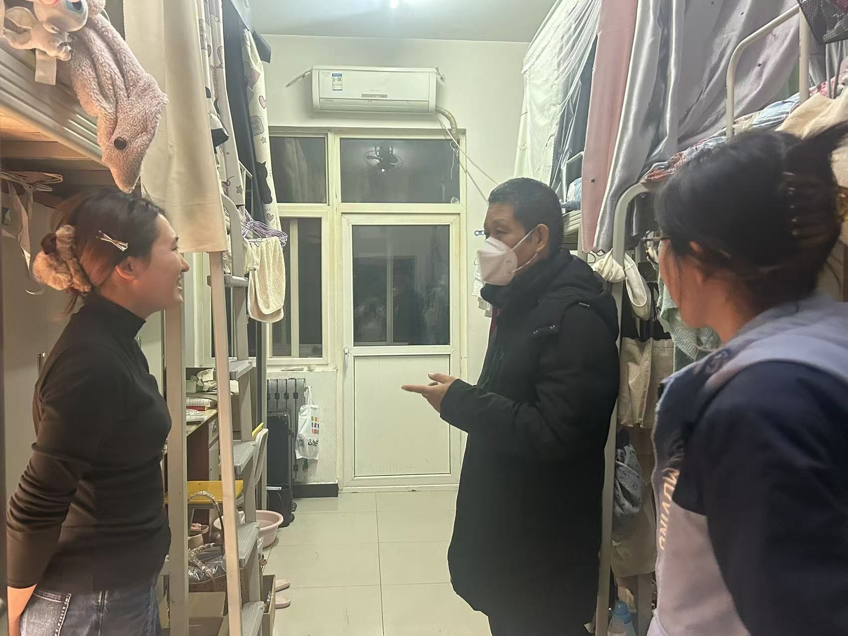走訪過程中,袁通路與同學(xué)們進(jìn)行了親切的交談,詳細(xì)了解了學(xué)生的學(xué)習(xí)和生活情況,全面排查了學(xué)生的宿舍安全隱患,認(rèn)真聽取了學(xué)生的各項(xiàng)訴求,鼓勵(lì)同學(xué)們認(rèn)真學(xué)習(xí)、快樂生活、積極上進(jìn)、不斷向前。