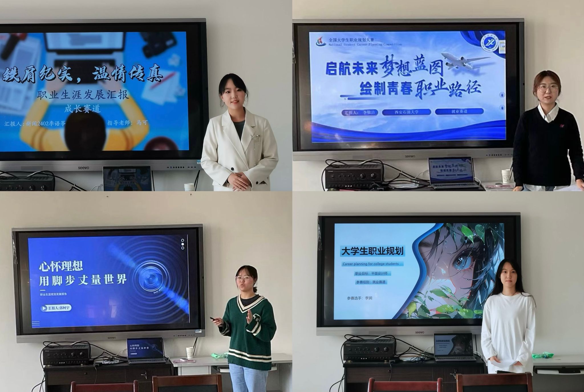 院賽的成功舉辦,不僅提升了學(xué)生的職業(yè)規(guī)劃意識(shí)和就業(yè)競(jìng)爭(zhēng)力,也更好地引導(dǎo)大家科學(xué)規(guī)劃學(xué)業(yè)與職業(yè)發(fā)展,實(shí)現(xiàn)個(gè)人價(jià)值與社會(huì)需求的有效對(duì)接。最終,確定以下進(jìn)入校賽的選手名單,成長(zhǎng)賽道:郭柯宇、李語(yǔ)箏,就業(yè)賽道:李敏潔、李潤(rùn)。