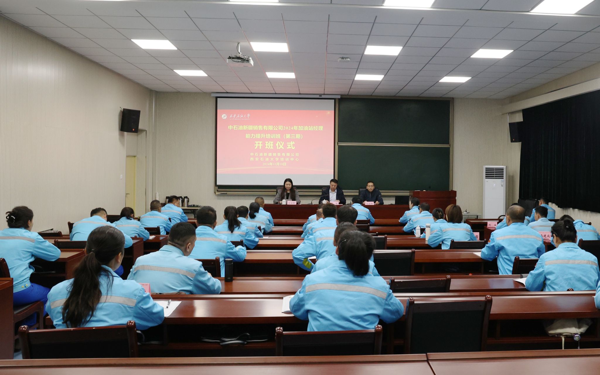 11月18日上午,中石油新疆銷售有限公司2024年加油站經(jīng)理能力提升培訓(xùn)班(第三期)順利開班。中石油新疆銷售有限公司市場營銷部經(jīng)理羅斌、我校繼續(xù)教育學(xué)院(培訓(xùn)中心)黨總支書記張凌寒出席開班儀式。
