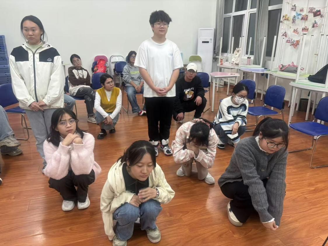 工作坊過程中,通過不同的項(xiàng)目,每位同學(xué)都產(chǎn)生了自己獨(dú)特的體驗(yàn)。例如在第一場(chǎng)相遇環(huán)節(jié),通過自我介紹讓工作坊內(nèi)的學(xué)生相互了解,建立團(tuán)體規(guī)范,簽訂契約,增進(jìn)成員們的信任感,促進(jìn)成員開放自我;在第二場(chǎng)“心靈連連看”環(huán)節(jié),需要大家都蒙上眼罩尋找到你最想要的那雙手。戴上眼罩后,屏蔽掉視覺,不再淺顯地通過外貌特征,而是伴隨著肢體的觸碰和心靈的感受,來尋找你最想要的那雙手。時(shí)間流逝,有的同學(xué)很快就找到了自己想要的那雙手,深切感受到了“我需要?jiǎng)e人,我也在被需要”,有的學(xué)生最終也未找到。這可能就是生活本來的樣子吧,有時(shí)得到,有時(shí)失去,有圓滿,也有遺憾。