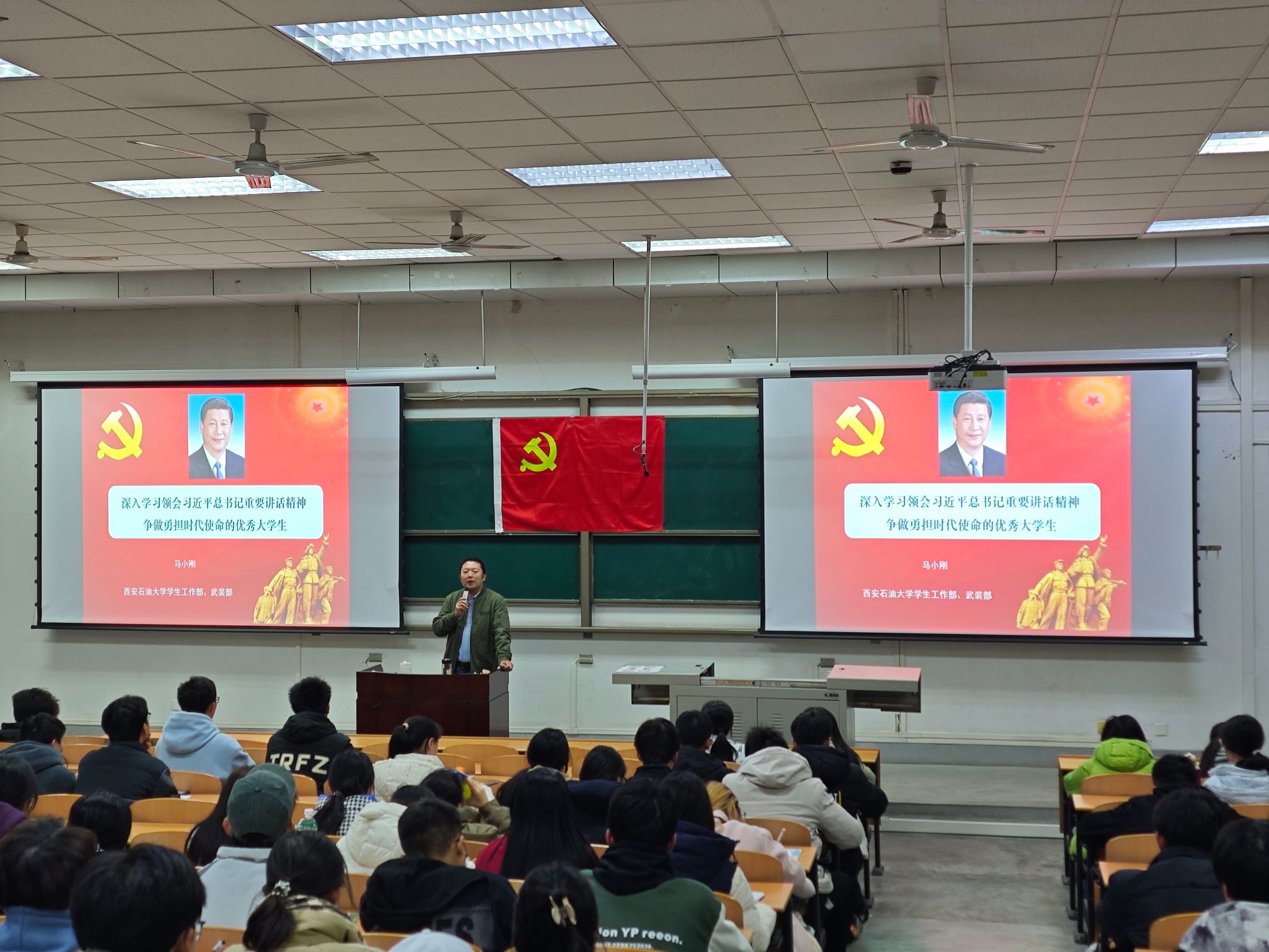為加強入黨積極分子的培養(yǎng)教育,提高入黨積極分子的政治素質(zhì)和理論水平,11月26日晚,理學(xué)院、馬克思主義學(xué)院、體育學(xué)院在鄠邑校區(qū)博覽樓239教室聯(lián)合舉辦了第十九期入黨積極分子培訓(xùn)班第五講。學(xué)生工作部、武裝部副部長馬小剛以《深入學(xué)習(xí)習(xí)近平總書記重要講話精神 爭做勇?lián)鷷r代使命的優(yōu)秀大學(xué)生》為題應(yīng)邀擔(dān)任主講。237名入黨積極分子參加了學(xué)習(xí)。