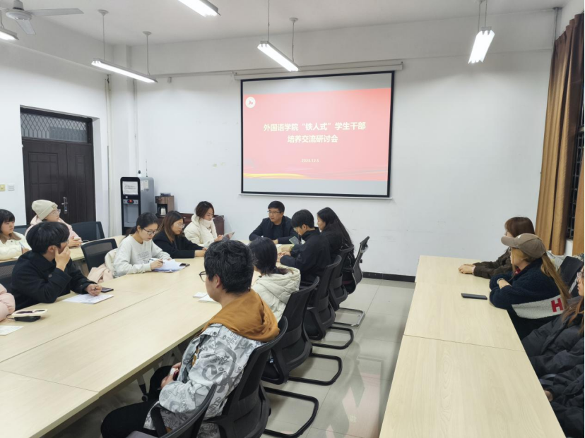 為進一步貫徹落實學校第三次黨代會精神,圍繞學校中心工作,引領學生干部繼承和發(fā)揚光榮傳統(tǒng),弘揚鐵人精神,激勵學生干部增強責任感和使命感,充分發(fā)揮學生干部在工作中的積極性,12月3日、5日,外國語學院開展培養(yǎng)“鐵人式”學生干部交流研討活動,學院黨委副書記邱嶺,院團委、學生會學生干部共計30余人參加活動,活動由學院學生工作辦公室副主任、團委書記陳浩主持。