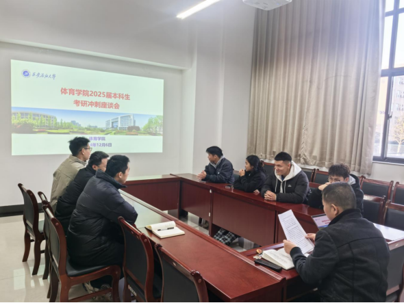 在距離2025年全國研究生入學考試半個月之際,為進一步助力2025屆考研學子全力沖刺,12月6日上午,體育學院在鄠邑校區(qū)東操場208會議室召開考研沖刺學生座談會。體育學院黨總支書記茍毅飛出席會議并給學生予以考研沖刺指導與鼓勵。