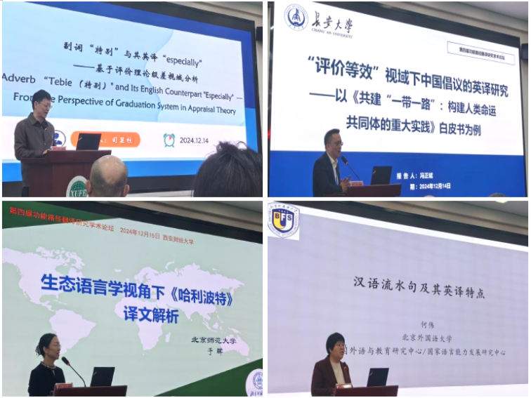 2024年12月14、15日,第四屆功能路徑翻譯研究論壇在西安財(cái)經(jīng)大學(xué)成功舉辦。來自北京第二外國語學(xué)院、北京師范大學(xué)、北京外國語大學(xué)、中山大學(xué)、等多所省外大學(xué)和長(zhǎng)安大學(xué)、西安郵電大學(xué)、西安理工大學(xué)、陜西科技大學(xué)等省內(nèi)院校的專家、學(xué)者齊聚一堂,共同探討依托系統(tǒng)功能語言學(xué)的功能路徑翻譯研究的發(fā)展、融合和創(chuàng)新。外國語學(xué)院副院長(zhǎng)陳武、翻譯系主任秦艷霞、英語系教師苗旸參加了此次論壇。