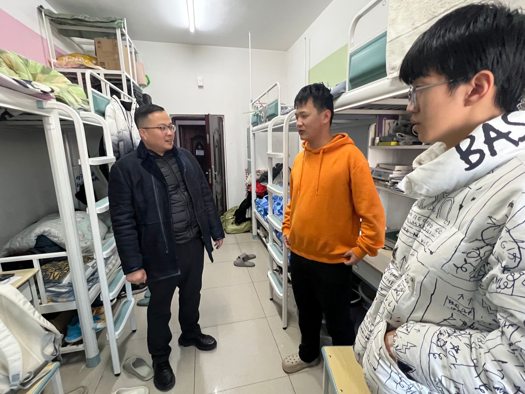 在檢查過程中,祁帆與學(xué)生進(jìn)行了親切交流,詢問學(xué)生在學(xué)習(xí)和生活中遇到的困難和問題,并叮囑學(xué)生要注意冬季保暖,合理安排作息時間,加強(qiáng)體育鍛煉,提高自身免疫力。同時,鼓勵學(xué)生要積極參與學(xué)校和學(xué)院組織的各項(xiàng)安全宣傳教育活動,增強(qiáng)自我保護(hù)意識和安全防范能力,創(chuàng)造一個安全、和諧、有序的學(xué)習(xí)生活環(huán)境。