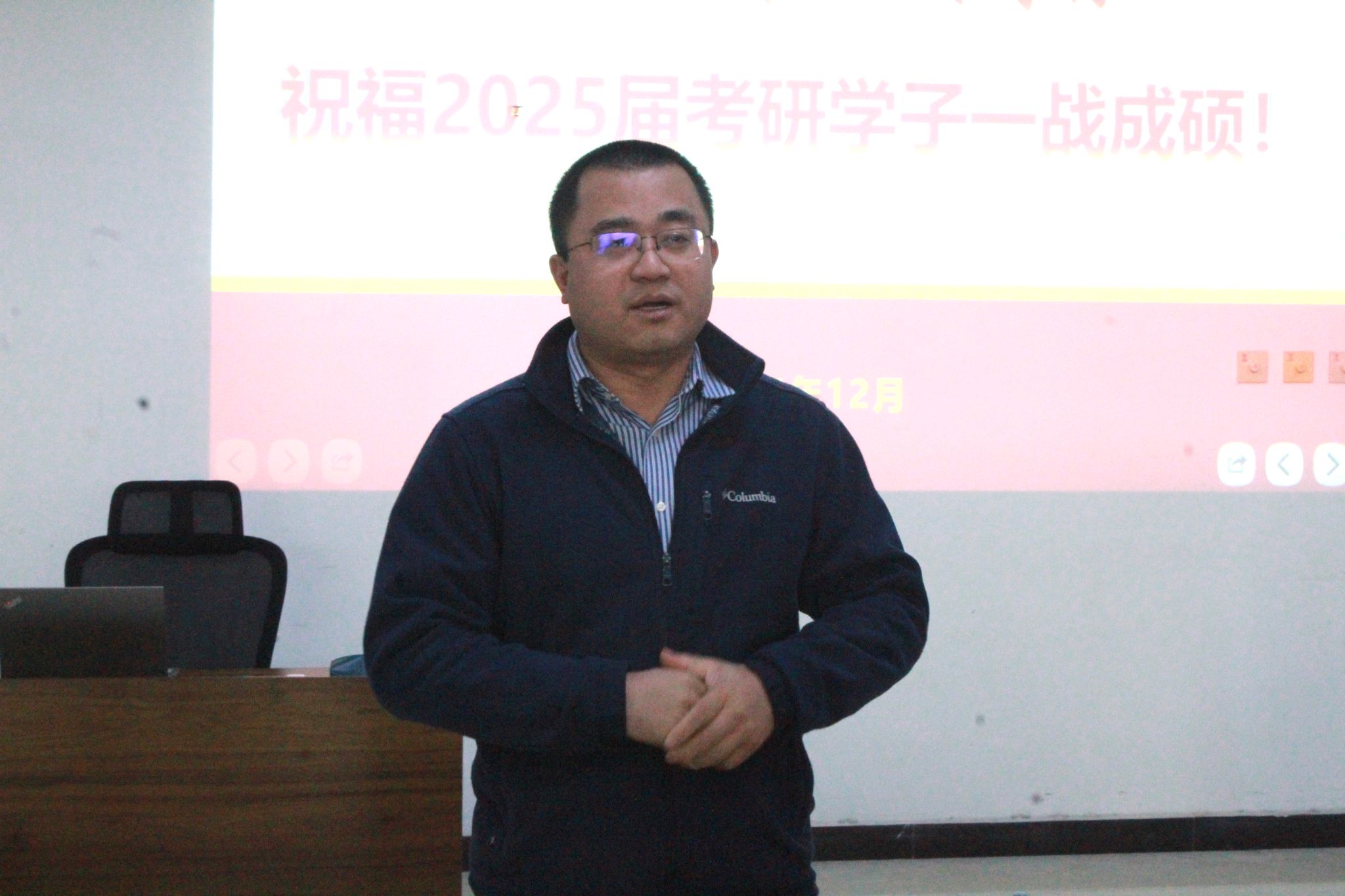 黃海在發(fā)言中進(jìn)一步表達(dá)了對(duì)考研學(xué)子的關(guān)心與支持,他表示,學(xué)院始終將學(xué)生的成長(zhǎng)與發(fā)展放在首位,將竭盡全力為同學(xué)們提供必要的支持與保障。他向同學(xué)們提出了三點(diǎn)期望,一是珍惜機(jī)會(huì),全力以赴。考研是一次寶貴的機(jī)會(huì),要珍惜這次機(jī)會(huì),全力以赴,為自己的未來奮斗,“行百里者半九十,要堅(jiān)持考完每一場(chǎng)考試,答完每一張卷子。二是保持自信,勇往直前。自信是成功的基石,只有相信自己,才能勇攀高峰,領(lǐng)略更廣闊的風(fēng)景,要保持自信,相信自己的實(shí)力,定能一戰(zhàn)成碩。三是展望未來,規(guī)劃人生。樹立職業(yè)生涯規(guī)劃的意識(shí),選擇自己喜歡且適合的科學(xué)研究方向,為未來的職業(yè)發(fā)展打下堅(jiān)實(shí)的基礎(chǔ),要勇于追求夢(mèng)想,不斷挑戰(zhàn)自我,實(shí)現(xiàn)自己的人生價(jià)值。