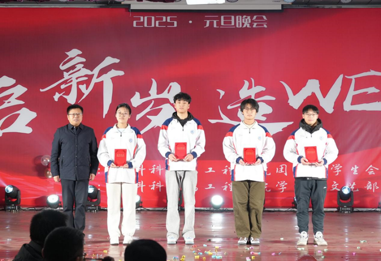 晚會(huì)期間,張驍勇為學(xué)院2024年獲得國(guó)家獎(jiǎng)學(xué)金、國(guó)家勵(lì)志獎(jiǎng)學(xué)金、王濤英才獎(jiǎng)學(xué)金、學(xué)業(yè)獎(jiǎng)學(xué)金等學(xué)生代表進(jìn)行頒獎(jiǎng),王亮為學(xué)院2024年在學(xué)科競(jìng)賽中取得優(yōu)異成績(jī)的團(tuán)隊(duì)及個(gè)人進(jìn)行了頒獎(jiǎng)。