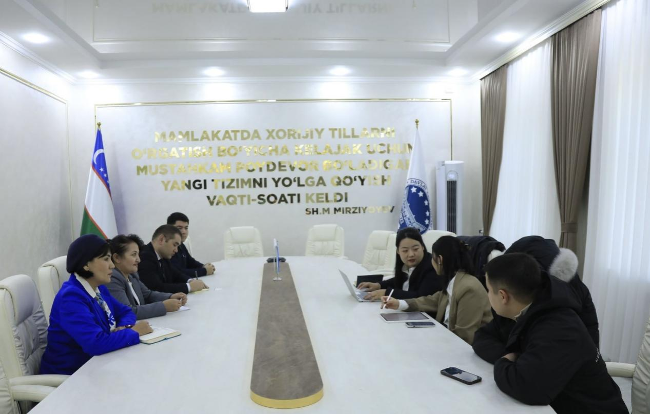 與安集延外國語學院副校長Elbek Kurbanov、外事部門主要負責人和安集延州政府外事專員會談