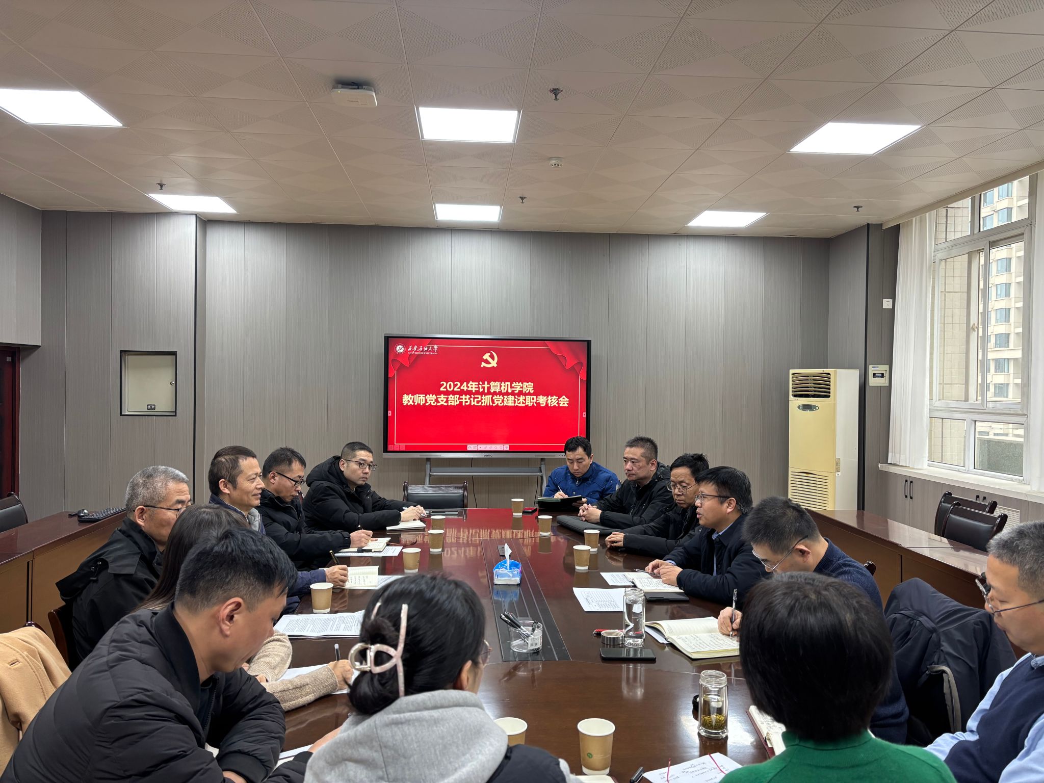 張驍勇在認(rèn)真聽(tīng)取每一位書(shū)記的述職后,對(duì)學(xué)院教師黨支部書(shū)記抓黨建工作進(jìn)行了工作指導(dǎo)。他充分肯定了8位教師黨支部書(shū)記在2024年抓黨建工作中取得的成績(jī),并結(jié)合計(jì)算機(jī)學(xué)院的學(xué)科專(zhuān)業(yè)特點(diǎn)、教學(xué)科研需求、人才培養(yǎng)要求等實(shí)際,對(duì)基層黨支部書(shū)記抓黨建工作進(jìn)行了具體指導(dǎo)。一是要緊跟智能時(shí)代要求和學(xué)校發(fā)展步伐,更新黨支部政治理論學(xué)習(xí)的內(nèi)容。要及時(shí)跟進(jìn)新理論、新方法迭代,積極開(kāi)展大數(shù)據(jù)、人工智能等學(xué)科前沿的學(xué)習(xí),積極探索智慧教育實(shí)踐。二是要把握好對(duì)黨支部開(kāi)展“三會(huì)一課”的基礎(chǔ)性要求,創(chuàng)新性地開(kāi)展工作,扎實(shí)推進(jìn)“分類(lèi)指導(dǎo)、爭(zhēng)先進(jìn)位”三年行動(dòng)計(jì)劃?;鶎咏處燑h支部的黨建工作要為提升教師的素養(yǎng)和能力、提高人才培養(yǎng)質(zhì)量保駕護(hù)航。三是要結(jié)合學(xué)院實(shí)際,加強(qiáng)黨員隊(duì)伍建設(shè)。要加強(qiáng)教師黨員的教育管理監(jiān)督,更要凝聚師生力量,注重在青年教師群眾中發(fā)展黨員。他希望各教師黨支部書(shū)記認(rèn)真總結(jié)經(jīng)驗(yàn),不斷提升黨建工作水平,為實(shí)現(xiàn)學(xué)校黨委提出的“三大目標(biāo)”,營(yíng)造學(xué)校的“三個(gè)氛圍”,推動(dòng)學(xué)校學(xué)院高質(zhì)量發(fā)展貢獻(xiàn)基層組織的力量。