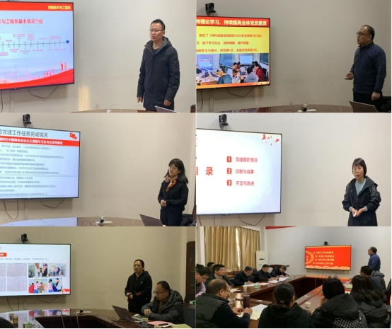 述職評議會上,強偉、徐向前、劉文婷、張雅妮、潘瑞娟等5位教工黨支部書記分別從支部年度黨建工作任務(wù)完成情況、圍繞中心工作抓黨建情況、創(chuàng)新及亮點工作、存在的不足及努力方向等四個方面,全面報告了一年來黨支部工作的開展情況。