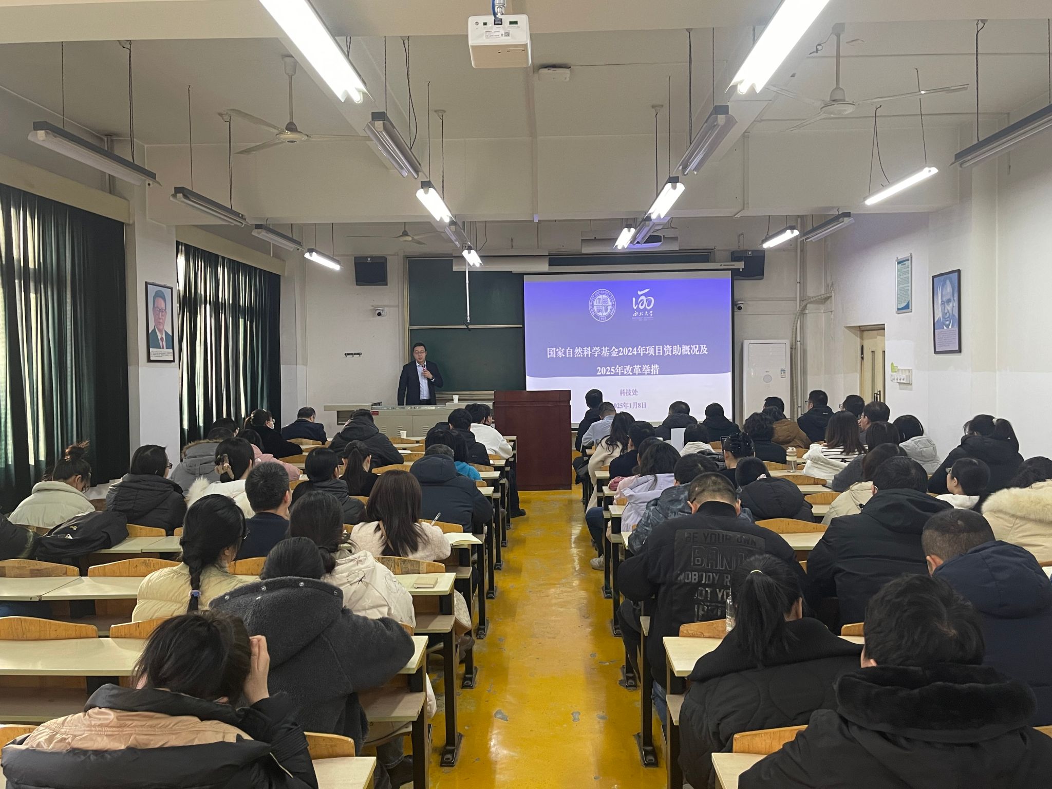 為持續(xù)做好2025年度國家自然科學基金申報工作,進一步提升國家基金申報質(zhì)量,繼續(xù)推動有組織科研工作,1月14日下午,西北大學科學技術處處長、現(xiàn)代物理研究所楊濤教授應邀在我校第二教學樓1107室作了題為“國家自然科學基金2024年項目資助概況及2025年改革舉措”的報告。科研處全體成員、各院科研副院長、科研辦公室主任(秘書)、教師代表等100余人參加報告會。會議由科研處處長張益主持。