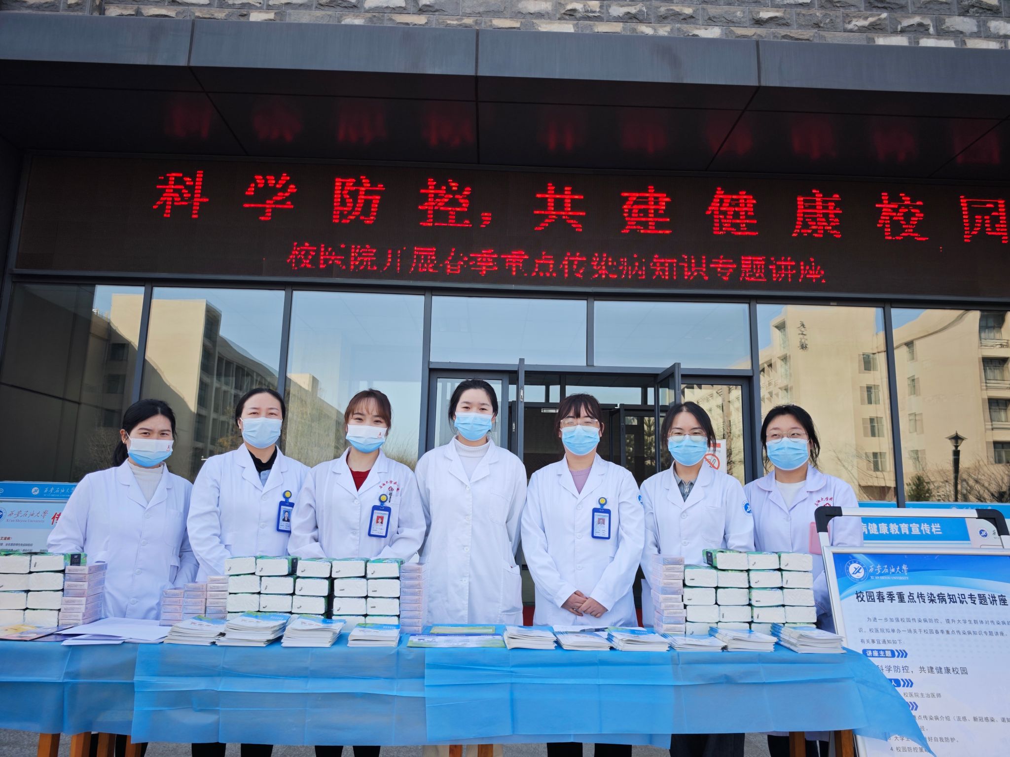 為切實(shí)做好春季傳染病防控工作,增強(qiáng)師生對(duì)傳染病的防范意識(shí),225日、28日,校醫(yī)院分別在雁塔校區(qū)第三會(huì)議室和鄠邑校區(qū)弘石報(bào)告廳開展了校園春季重點(diǎn)傳染病講座和宣傳活動(dòng),兩校區(qū)師生及家屬500余人參加。