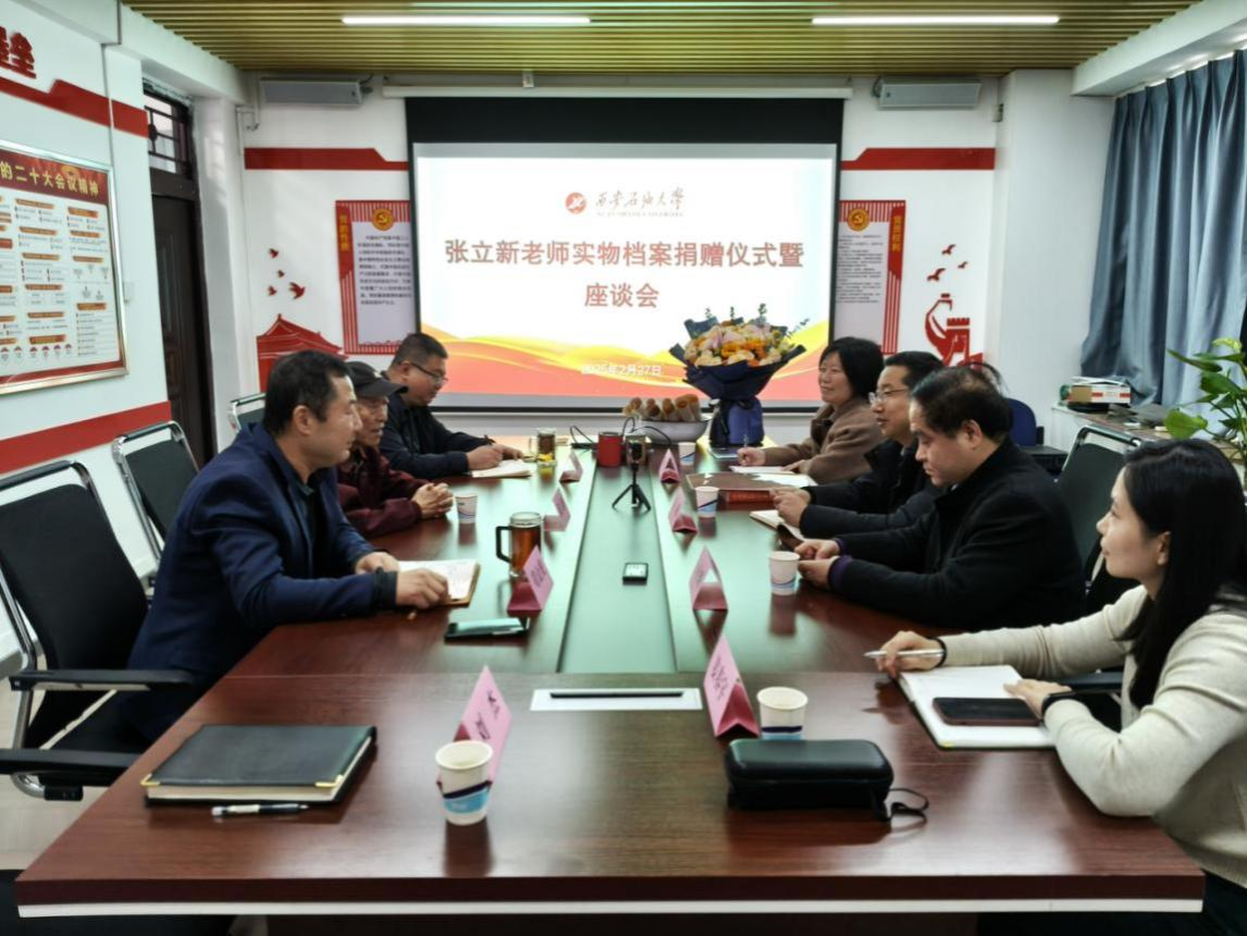 2月27日下午,我校退休教職工、廠61級校友張立新向?qū)W校捐贈1964年中共西安石油學(xué)院委員會頒發(fā)“三好學(xué)生”獎狀、1967年西安石油學(xué)院畢業(yè)證書等16件珍貴實物檔案。檔案捐贈儀式在雁塔校區(qū)工會樓二樓會議室舉行,會議由離退休工作處處長茍金虎主持,校友工作與合作交流處、離退休工作處、檔案館主要負(fù)責(zé)人及相關(guān)工作人員參加會議。