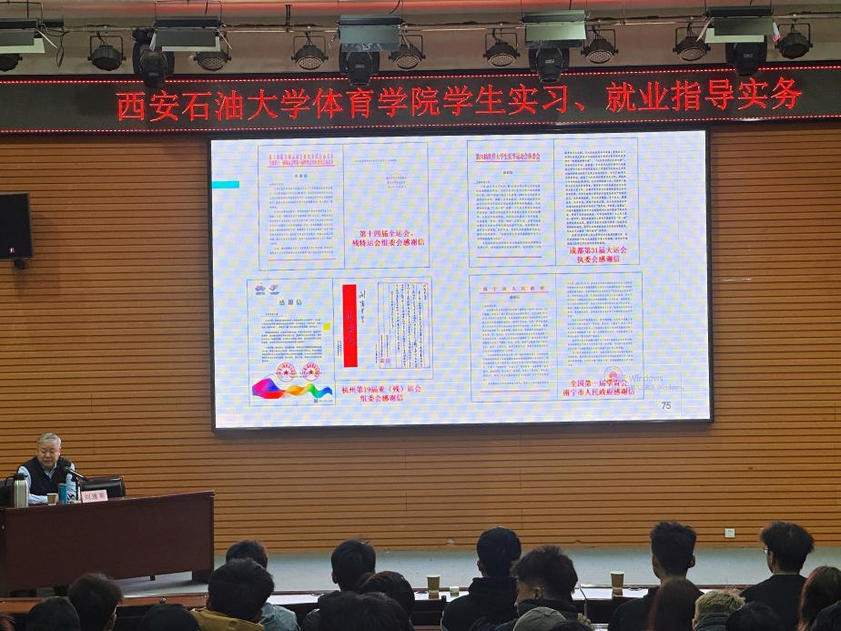 3月14日,體育學(xué)院在鄠邑校區(qū)崇文樓118報告廳舉辦學(xué)生實習(xí)與就業(yè)指導(dǎo)專題講座,特邀我校兼職教授、我國知名體育產(chǎn)業(yè)專家、上海體育大學(xué)劉清早教授講授題為學(xué)生實習(xí)、就業(yè)指導(dǎo)實務(wù)——以本科和碩士畢業(yè)生為重點、兼論體育產(chǎn)業(yè)項目贏利分析的報告。體育學(xué)院院長李壽邦、辦公室主任侯陽、學(xué)工辦主任姜國平、全體本科生及研究生共同參與。