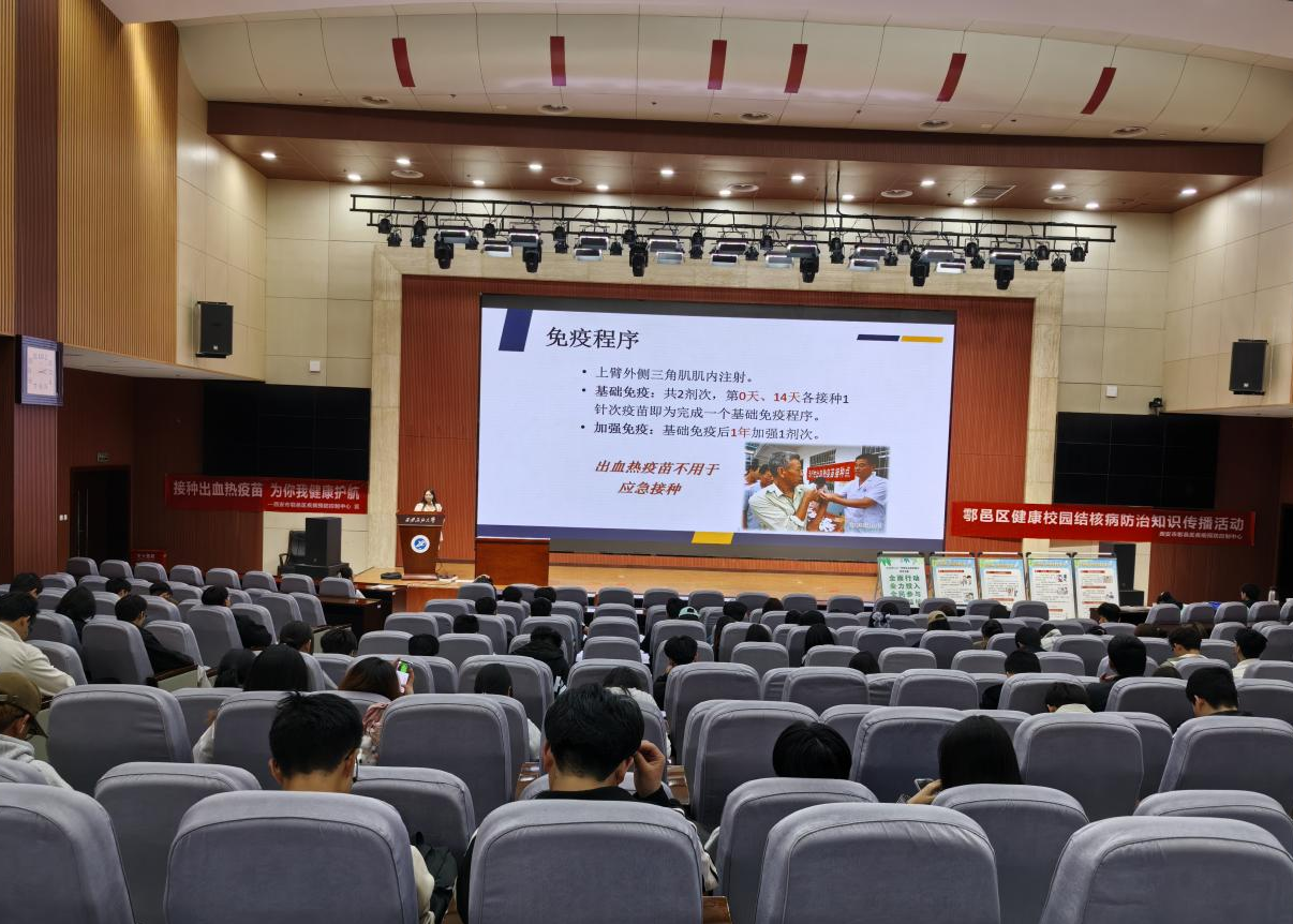 講座中,各位專家、老師結(jié)合自身多年工作經(jīng)歷,詳細(xì)介紹了什么是肺結(jié)核以及肺結(jié)核的潛伏期表現(xiàn)、如何預(yù)防和治療肺結(jié)核病。鄠邑區(qū)疾控中心鄭美辰老師給大家講了關(guān)于流行性出血熱病原學(xué)特征、傳播途徑、典型癥狀及防治要點(diǎn),詳細(xì)介紹了疫苗接種、個(gè)人防護(hù)、環(huán)境衛(wèi)生整治等防控措施。專家們的講座充分考慮大學(xué)生實(shí)際,語言淺顯易懂,大家受益匪淺?,F(xiàn)場(chǎng)還通過互動(dòng)問答等形式增加了講座的趣味性,幫助師生及居民提升防治結(jié)核病、流行性出血熱的意識(shí),取得了良好的教育宣傳效果。