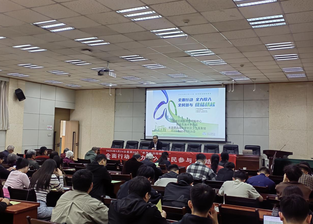 為迎接第30個(gè)“世界防治結(jié)核病日”,進(jìn)一步增強(qiáng)師生結(jié)核病防控意識(shí),3月24日、25日下午校醫(yī)院聯(lián)合學(xué)生工作部(處)、研究生工作部邀請(qǐng)西安市雁塔區(qū)疾病預(yù)防控制中心副主任醫(yī)師李海軍、鄠邑區(qū)疾病預(yù)防控制中心結(jié)防科副科長王旦、鄭美辰老師分別在雁塔校區(qū)、鄠邑校區(qū)開展“全面行動(dòng) 全力投入 全民參與 終結(jié)結(jié)核”、流行性出血熱專題知識(shí)講座。校醫(yī)院部分醫(yī)務(wù)人員、師生、社區(qū)居民約300人參加了講座。報(bào)告開始前,校醫(yī)院醫(yī)務(wù)人員在報(bào)告廳外設(shè)立宣傳展板、咨詢臺(tái),為學(xué)生發(fā)放了有關(guān)結(jié)核病、流行性出血熱宣傳手冊(cè)和宣傳單等宣傳資料。