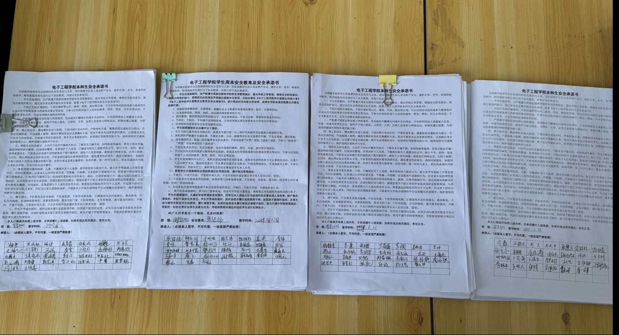 此次安全教育有利于進一步提高學生假期安全防范意識,強化學生行為規(guī)范與紀律意識,增強學生自我保護能力。學院將持續(xù)關注同學們思想動態(tài),多途徑加強學生安全教育,注重提升學生多方面安全意識與素養(yǎng),營造安全穩(wěn)定的校園環(huán)境。會后,各年級輔導員老師組織學生閱讀并簽署了電子工程學院本科生安全承諾書。