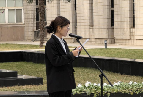郝琪代表學(xué)生黨員發(fā)言。她號(hào)召全體青年黨員以唐春雨學(xué)長為榜樣,牢記初心使命,用實(shí)際行動(dòng)展現(xiàn)新時(shí)代共產(chǎn)黨員的責(zé)任與擔(dān)當(dāng)。